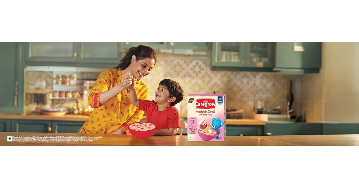 Nestlé CEREGROW™ is a multigrain kids cereal, assuring a bowl of dense nutrition with the goodness of grains like wheat, rice and oats, milk & fruits like apple, orange, mango & pomegranate. It is also a source of 19 essential nutrients like Iron, Calcium & Protein.