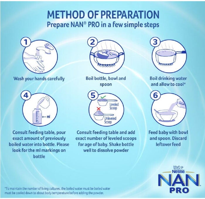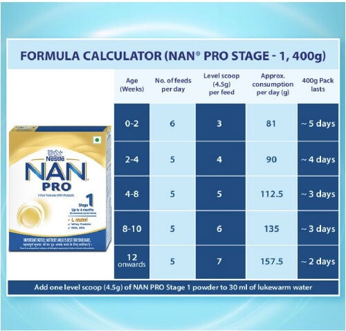 Mother’s milk is the best for your baby but in case of unavailability or insufficiency it is recommended to check with your Pediatrician before starting NAN PRO.